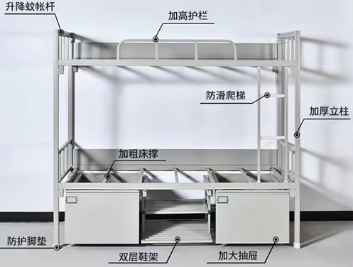 公寓床廠(chǎng)家防護(hù)設(shè)施安裝護(hù)欄加固,公寓床廠(chǎng)家上鋪四周安裝高度≥30c... <了解詳情>
